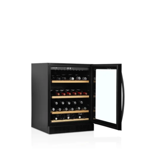 Serija vinskih vitrin TFW brez okvirja je elegantna možnost za shranjevanje in razstavljanje steklenic vina. Vitrine imajo elegantna steklena vrata od roba do roba in izvlečne lesene police, ki omogočajo enostaven dostop. Bela LED-osvetlitev in črna notranjosti vitrine poskrbita, da so steklenice vina elegantno razstavljene. Poleg ekskluzivne zasnove ima vinska vitrina tudi sodoben hladilni sistem, ki zmanjšuje toploto, hrup in porabo energije.